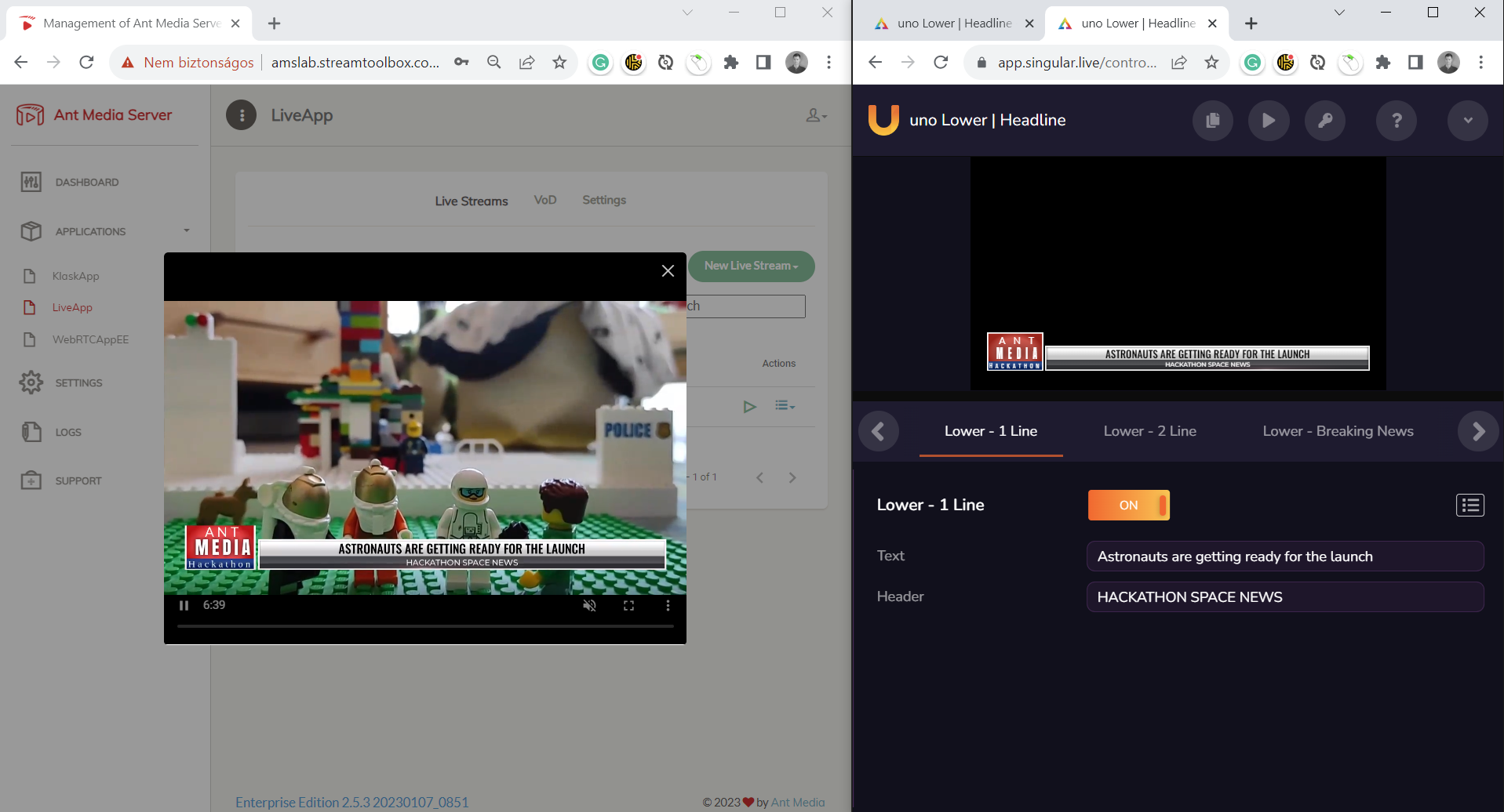 Stamp for Ant Media Server is a commercial plugin that can dynamically add video overlays to live streams based on instructions received on its REST API.